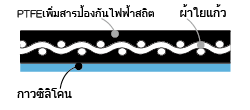 เทปทนความร้อนที่ใช้ผ้าใยแก้วเคลือบฟลูออโรเรซิน (PTFE) และสารคาร์บอนเป็นวัสดุพื้น และใช้กาวซิลิโคนเป็นสารยึดติด