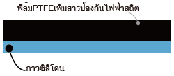 เทปทนความร้อนที่ใช้ฟิล์มฟลูออโรพลาสติก(PTFE) เคลือบสารคาร์บอนเป็นวัสดุพื้นและใช้กาวซิลิโคนเป็นสารยึดติด
